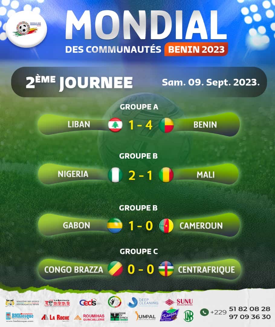 Au Bénin, le Mondial des Communautés 2023 bat son plein avec une deuxième journée passionnante. Le samedi 09 septembre 2023, les équipes engagées se sont affrontées avec détermination, offrant aux spectateurs une série de matchs captivants. Voici le récapitulatif de cette deuxième journée, avec les résultats et les évolutions du classement.