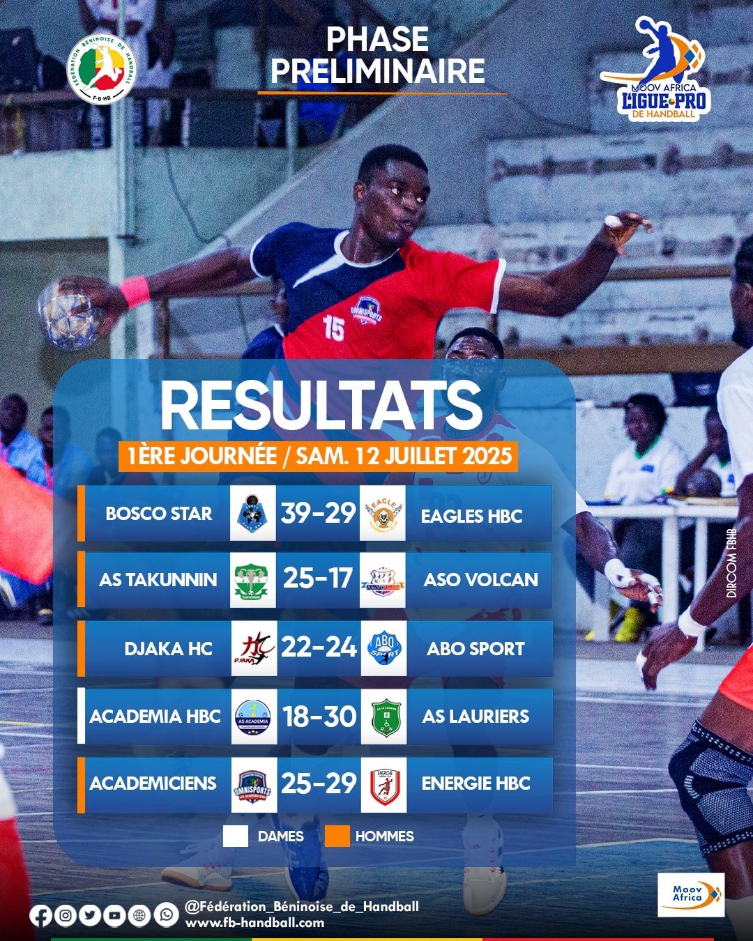 La Fédération Béninoise de Handball (FBHB) a officiellement lancé la saison 2024-2025 de la Moov Africa Ligue professionnelle, le samedi 12 juillet 2025, au Hall des Arts, Sports et Loisirs. C’est une phase préliminaire qui a lancée les hostilités de la saison. Cette phase marque l’entrée en lice des équipes non qualifiées pour les play-offs de la saison précédente ainsi que des nouvelles formations intégrées à la ligue professionnelle.