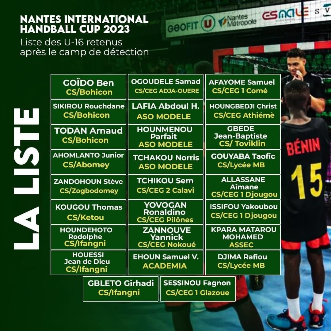 Dans le cadre de la deuxième participation de l’équipe nationale béninoise masculine des U-16 au Nantes International Handball Cup dans le mois d’août 2023, la Fédération Béninoise de Handball organise une série de mises au vert de la sélection finale.