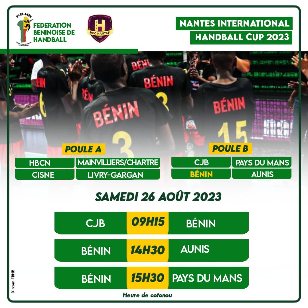 Le Bénin se prépare à relever le défi du Nantes Internationale Handball Cup 2023 et à faire honneur à son drapeau national. L’équipe béninoise est prête à affronter ses adversaires dans le cadre de la compétition qui se déroulera à Nantes, en France. Les matchs promettent d’être intenses et excitants, et les jeunes handballeurs béninois sont déterminés à montrer leurs talents sur la scène internationale.