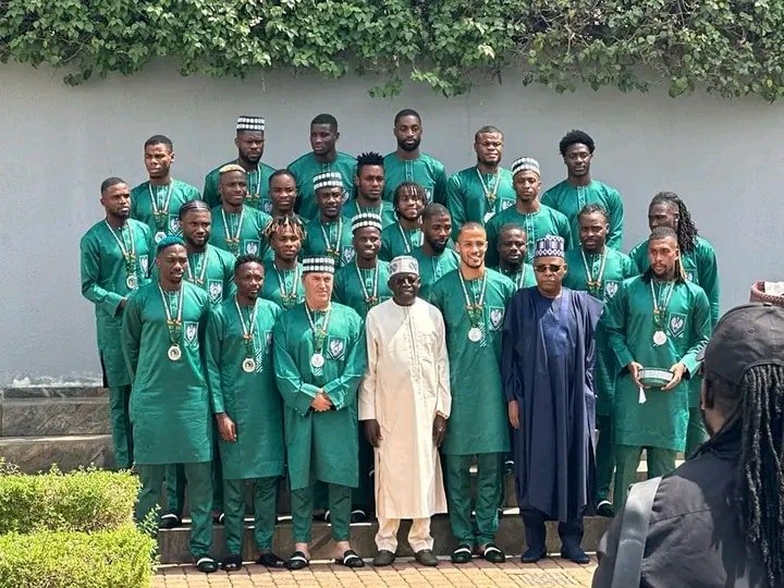 La cérémonie s’est déroulée dans la salle du conseil de la villa présidentielle d’Abuja, en présence de la délégation des Super Eagles dirigée par le ministre du Développement des sports, le sénateur John Owan Enoh. Les joueurs, vêtus de leurs tenues vertes emblématiques, ainsi que les officiels de la Fédération nigériane de football (NFF), étaient tous présents pour recevoir l’hommage bien mérité.