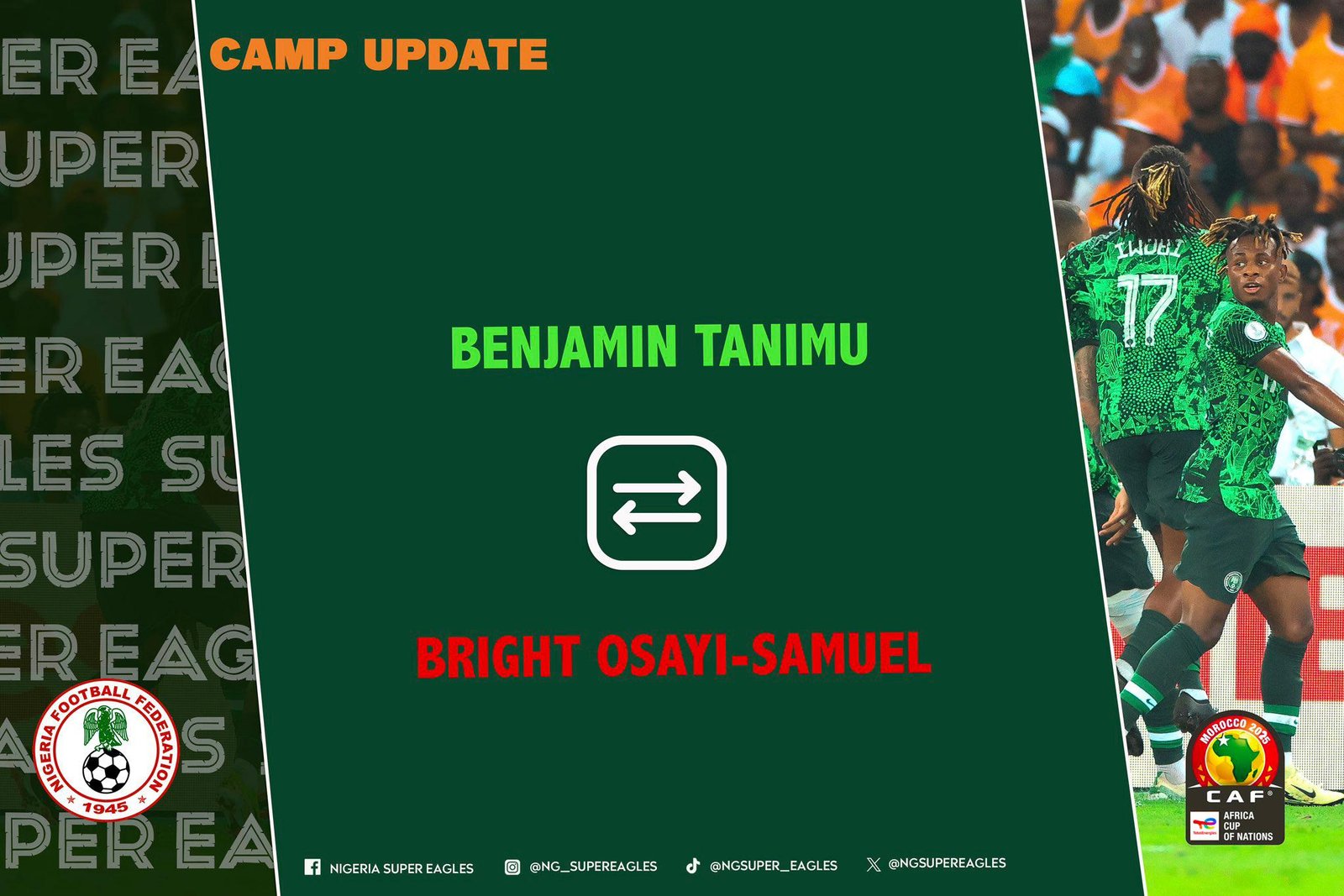 Osayi-Samuel, initialement convoqué, a dû de se retirer. Pour pallier cette absence, le sélectionneur du Nigeria a appelé Benjamin Tanimu en renfort. À ce stade, 16 joueurs ont déjà rejoint le camp de regroupement des Super Eagles pour préparer les matchs de septembre 2024.