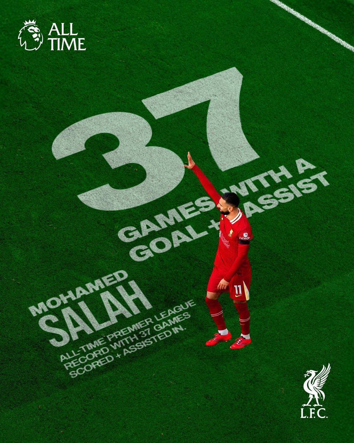 Ce but a permis à Salah de surpasser Wayne Rooney dans l’histoire de la Premier League : il devient le Premier Joueur à enregistrer au moins un but et une passe décisive dans un même match pour la 37e fois en carrière.