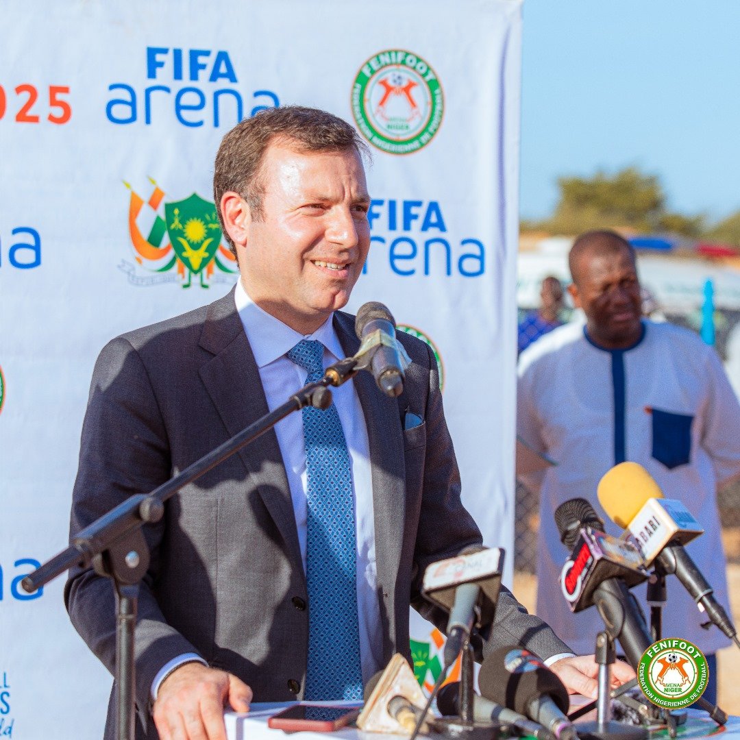 Elkhan Mammadov, Directeur des Associations Membres de la FIFA : « Je suis ravi de voir la jeunesse nigérienne inaugurer aujourd’hui ces mini-terrains FIFA Arena. Ces espaces flambant neufs offrent aux enfants de Niamey un environnement sûr et inspirant pour jouer et grandir grâce au football. Le Niger occupe une place spéciale dans la communauté mondiale du football, et je suis convaincu que parmi les jeunes joueurs présents aujourd’hui, certains suivront les traces des grands noms du football africain. Ces terrains ne sont pas seulement des surfaces de jeu, ce sont des plateformes où les rêves prennent leur envol. Au nom de la FIFA, je souhaite à chaque jeune Nigérien du succès sur le terrain et en dehors. Nous sommes fiers de nous tenir aux côtés de la FENIFOOT pour créer encore plus d’opportunités pour l’avenir »