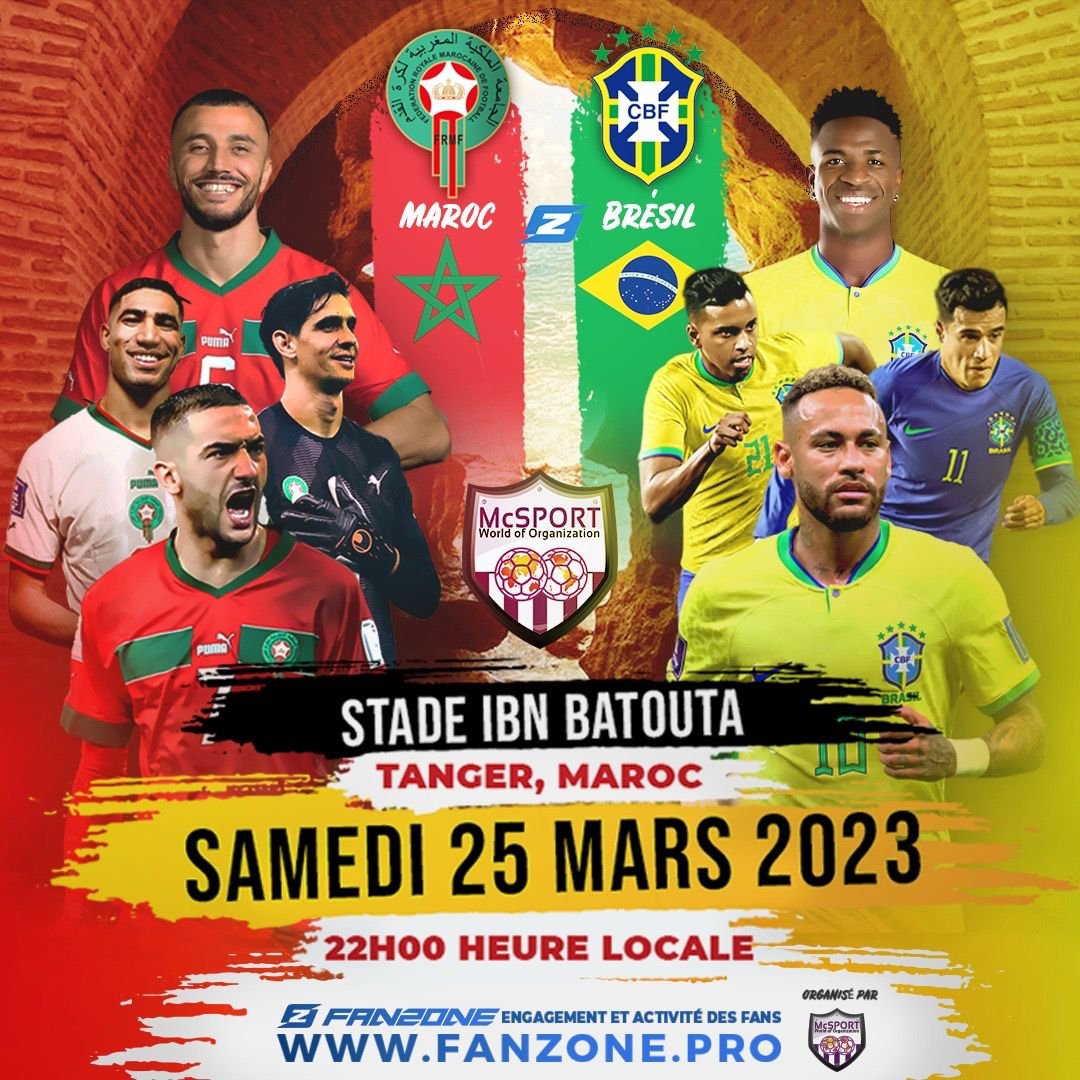 Maroc 🇲🇦 vs Brésil 🇧🇷, le 25 mars 2023 au grand stade de Tanger