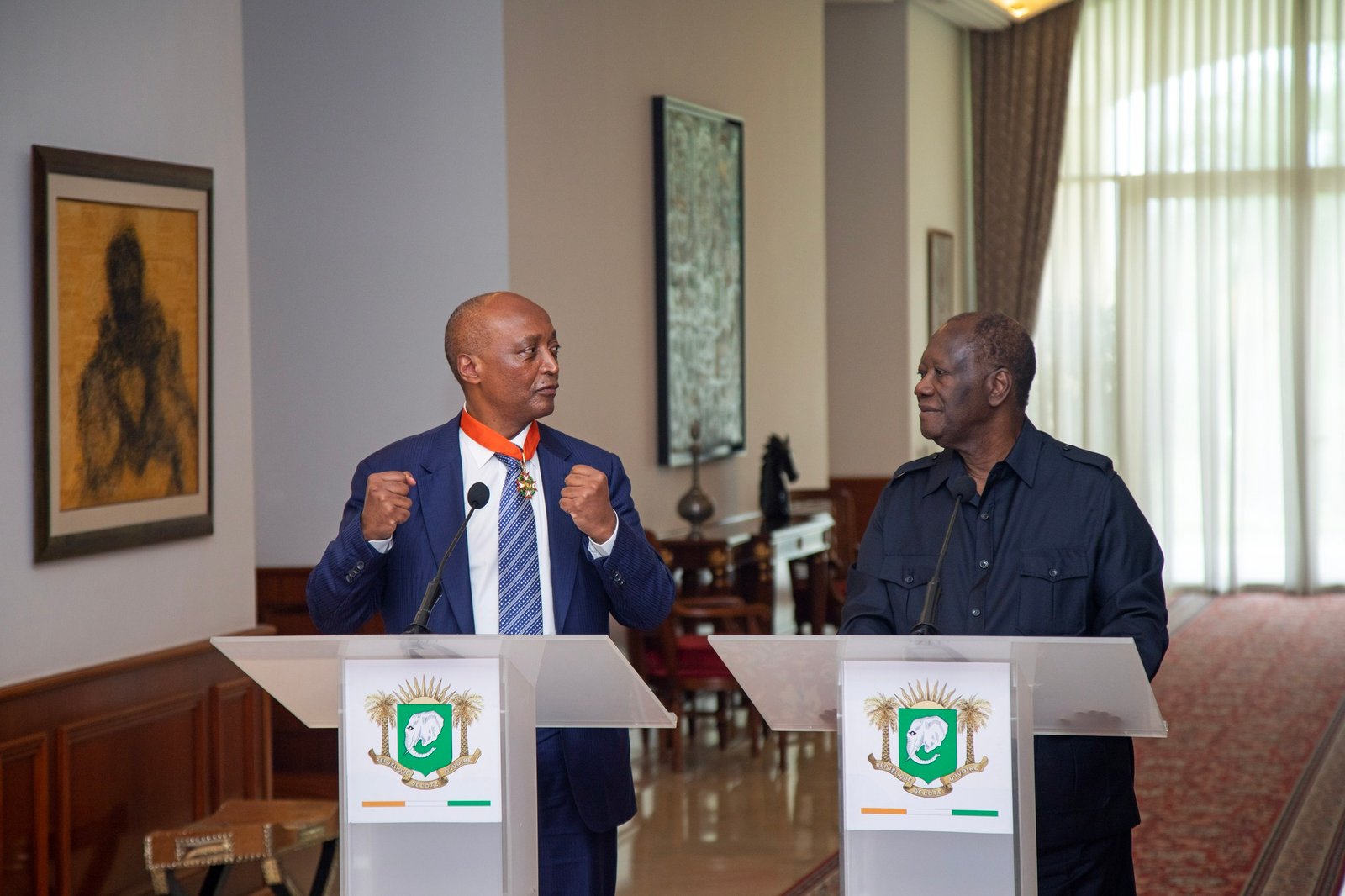 Le Président de la Confédération Africaine de Football (CAF), Dr Patrice Motsepe, a été décoré du titre de « Commandeur de l’Ordre National » par le président de la République de Côte d’Ivoire, Monsieur Alassane Ouattara. C’était lors de leur rencontre tenue le jeudi 12 septembre 2024 à Abidjan. À cette même occasion, le Secrétaire Général de la CAF, Veron Mosengo-Omba, a été distingué en tant qu’« Officier de l’Ordre National ».