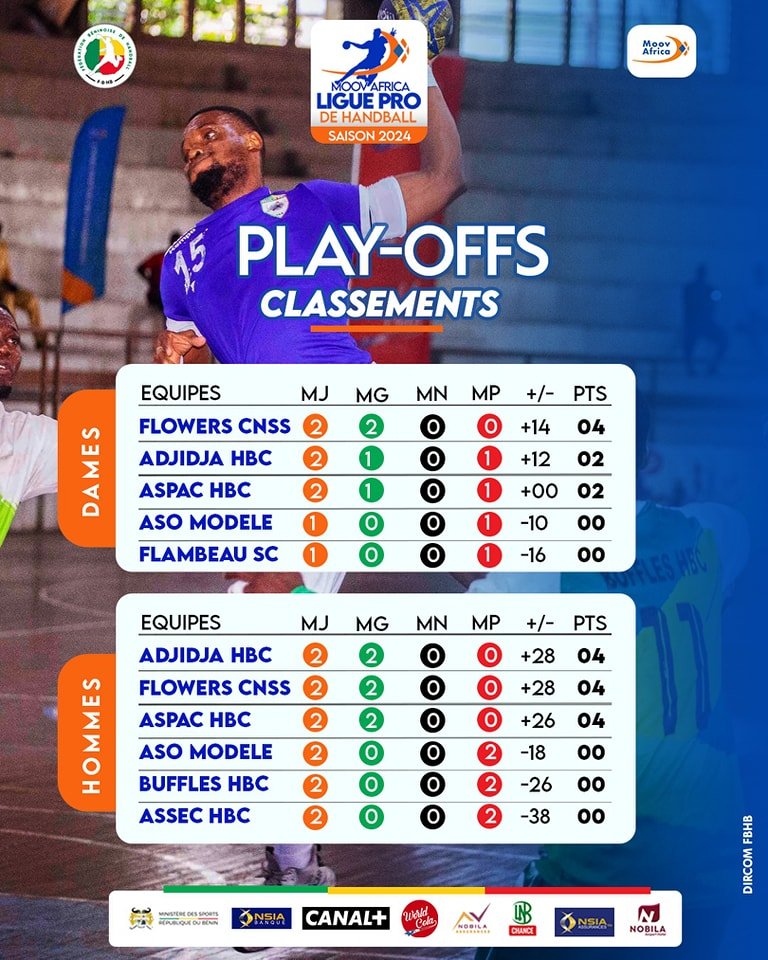 En effet, lors de cette deuxième journée, les équipes d’Ce lundi 09 septembre 2024, la deuxième journée des play-offs de la Moov Africa Ligue Pro 2024 était à l’honneur. Elle a été marquée ASPAC HBC et de Flowers CNSS continuent d’affirmer leur supériorité dans ces phases finales avec des performances solides, tant chez les hommes que chez les dames.