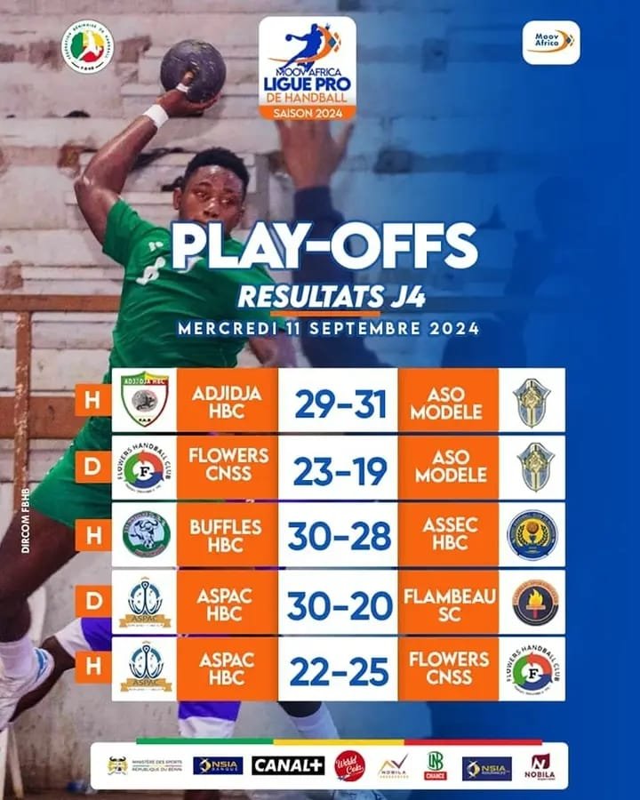Les play-offs de la Moov Africa Ligue Pro 2024 ont continué ce mercredi 11 septembre 2024 avec des matchs passionnants, tant chez les hommes que chez les dames. Découvrez les résultats de cette quatrième journée de compétition.