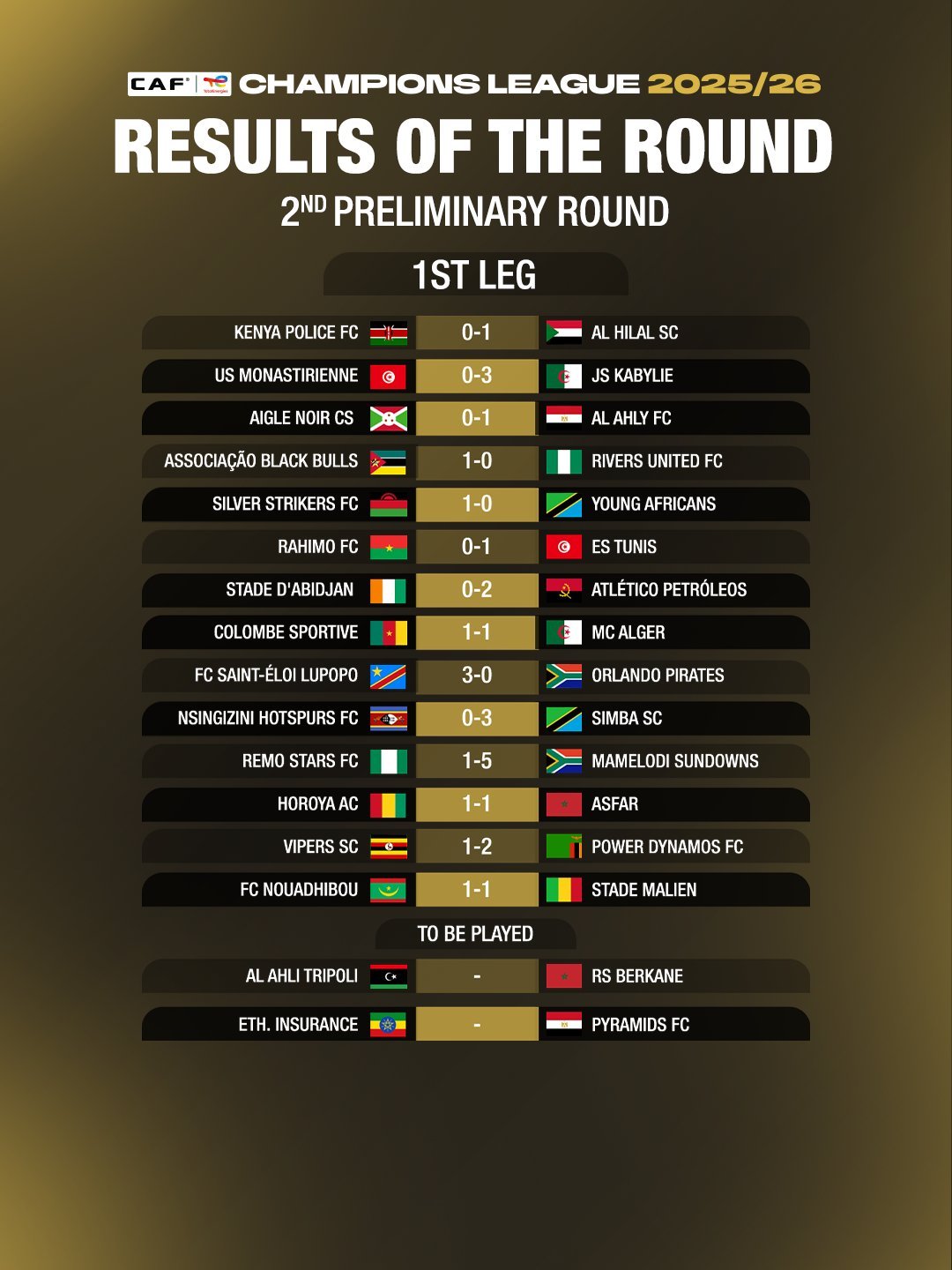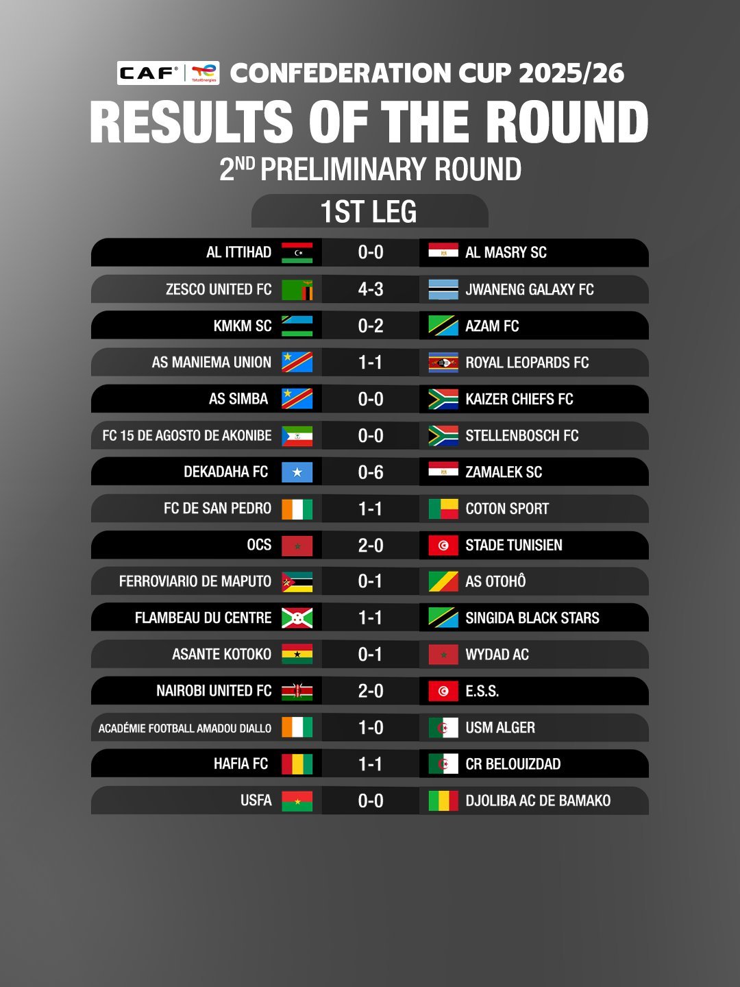 Les matchs retour du deuxième tour préliminaire auront lieu le week-end du 25-26 octobre 2025. Le Coton FC espère poursuivre son aventure continentale et décrocher une qualification historique pour la phase de groupes de la Coupe de la CAF.