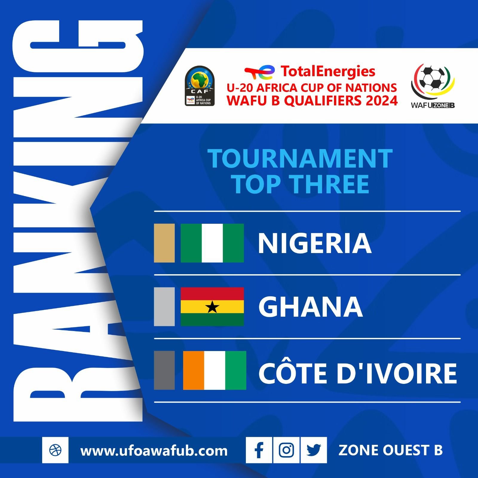 En prélude à la finale, la Côte d’Ivoire a décroché la médaille de bronze en battant le Niger 2-1 lors du match de la troisième place. Avec ce résultat, le Nigeria et le Ghana se qualifient pour la prochaine Coupe d’Afrique des Nations U20, où ils représenteront la zone Ouest B.