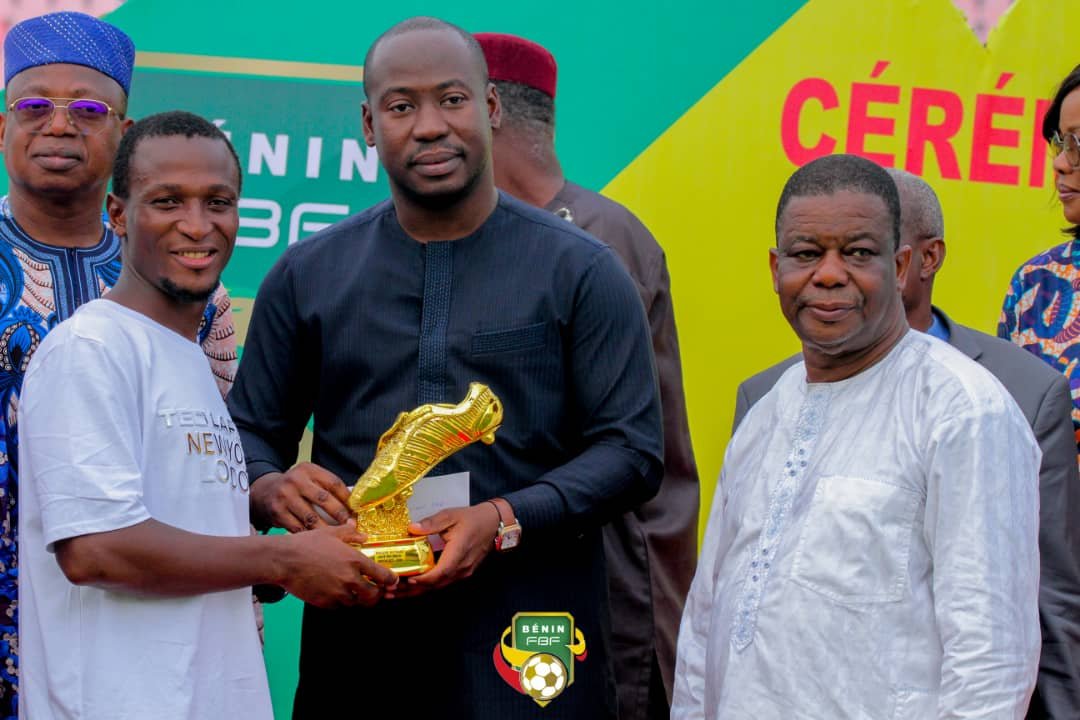 « Je suis heureux que nous ayons pu effectivement enclencher le professionnalisme, heureux que les efforts des dirigeants des clubs, des joueurs, des encadrements techniques aient été couronnés, heureux que la fédération Béninoise de football ait conformément à ses habitudes choisir de consacrer un moment pour féliciter les équipes. Vous avez vu que nous avons pu assister à la récompense du meilleur joueur, du meilleur buteur des championnats aussi bien les professionnels qu’amateur.