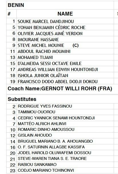 Le Bénin se mesure  à nouveau au Rwanda ce mardi 10 octobre 2024 à l’occasion de la 4ᵉ journée des éliminatoires CAN 2025. Les Guépards vont tenter d’enchaîner une victoire dans la course à la qualification contre le Rwanda. Pour cette rencontre qui débute à 16H GMT, soit 17H de Cotonou, découvrez le classement concocté par le sélectionneur Gernot Rohr. Jodel Dossou, titulaire il y a 3 jours, débute sur le banc en lieu et place de Andreas Hountondji. Quant à Cédric Hountondji, forfait de dernière minute, il a été remplacé par Olivier Verdon.