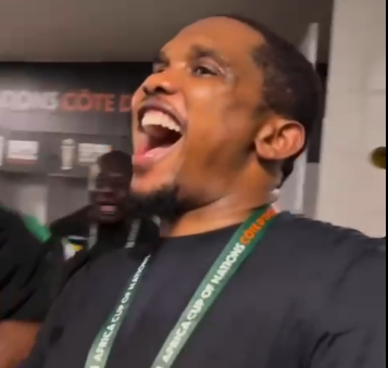 Le Cameroun était dans une position difficile, ayant besoin d’une victoire pour rester en lice dans la compétition. Le match face à la Gambie s’est terminé par une victoire 2-3 dans une rencontre intense. Après le match, une vidéo circulant sur les réseaux sociaux montre le président de la fédération camerounaise de football, Samuel Eto’o, en train de danser en signe de célébration.