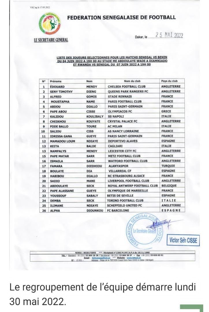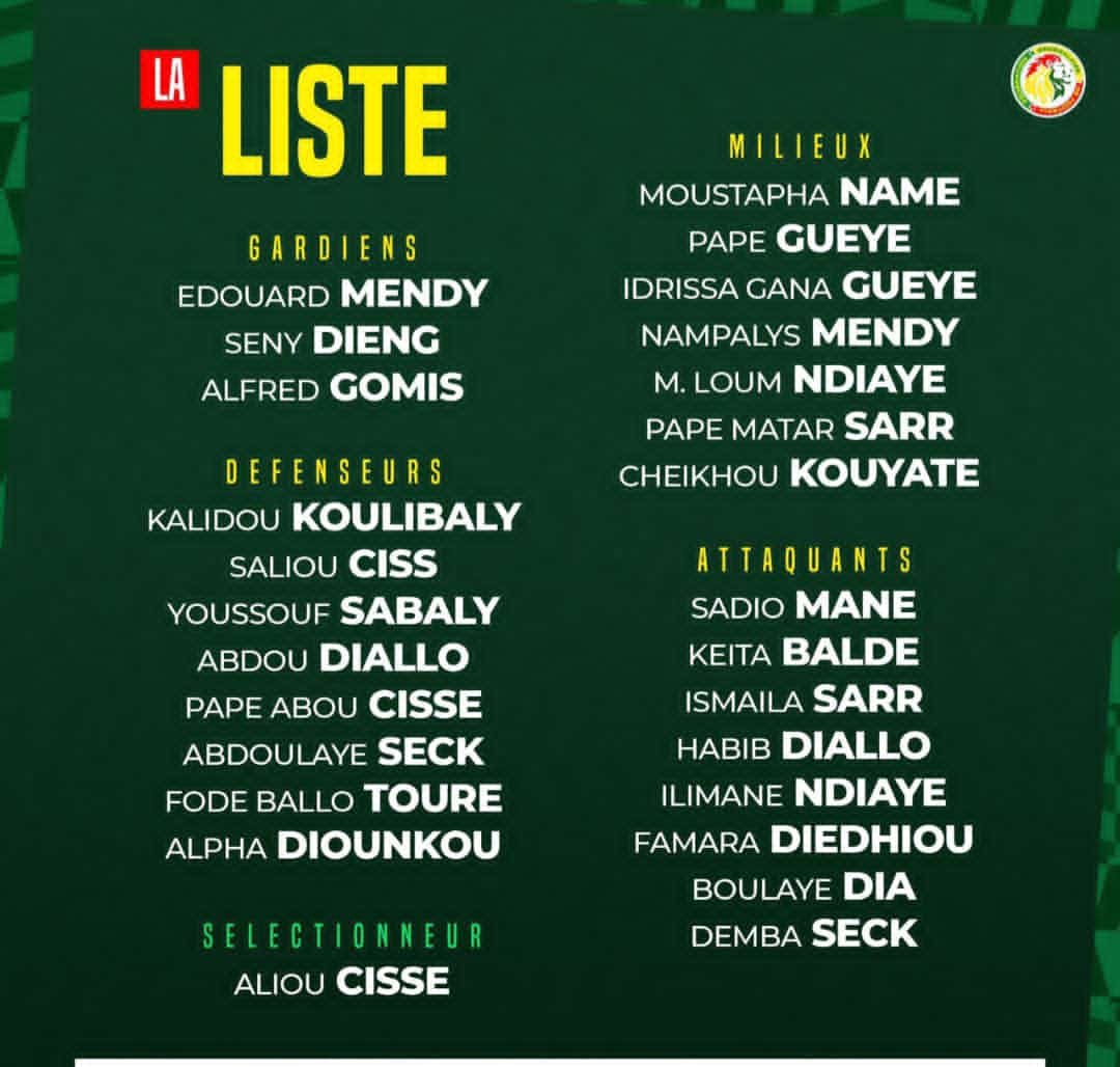 Sénégal : La liste officielle pour affronter le Bénin et le Rwanda en éliminatoires de la Can 2023