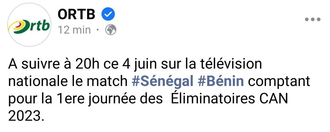A suivre à 20h ce 4 juin sur la télévision nationale le match #Sénégal #Bénin comptant pour la 1ere journée des Éliminatoires CAN 2023.