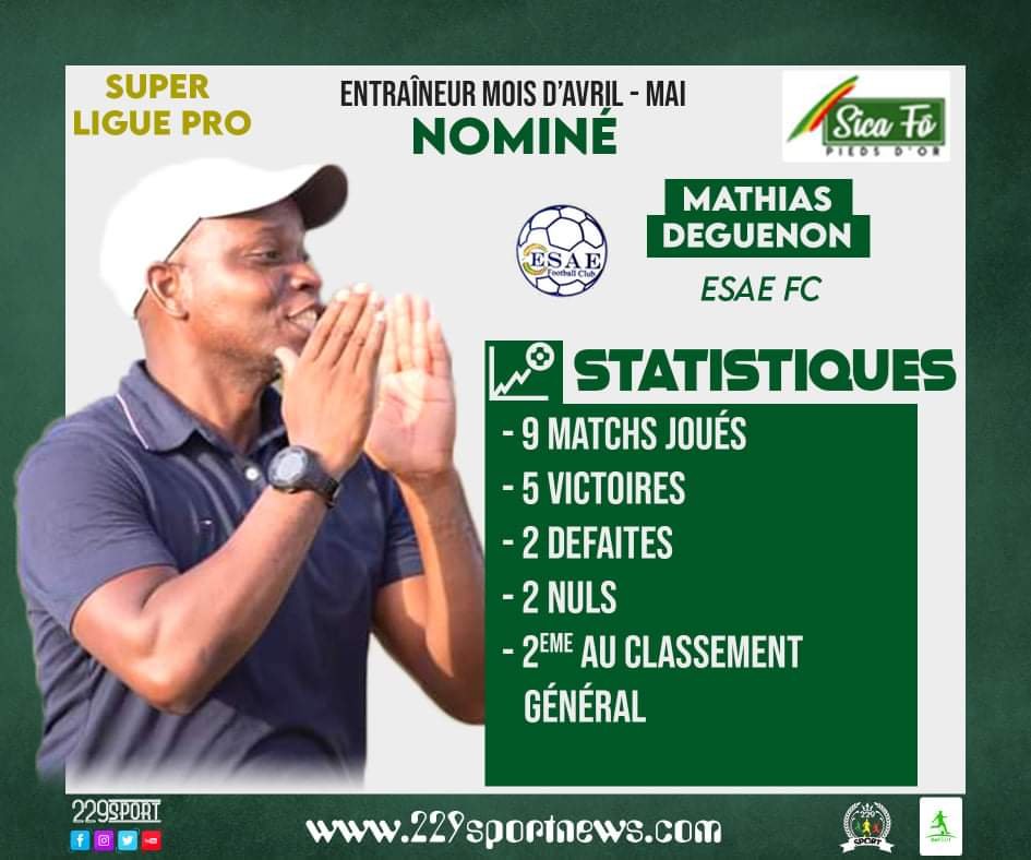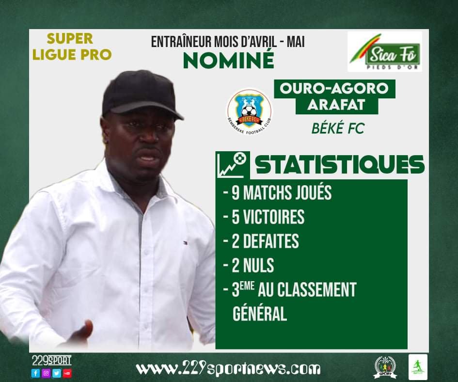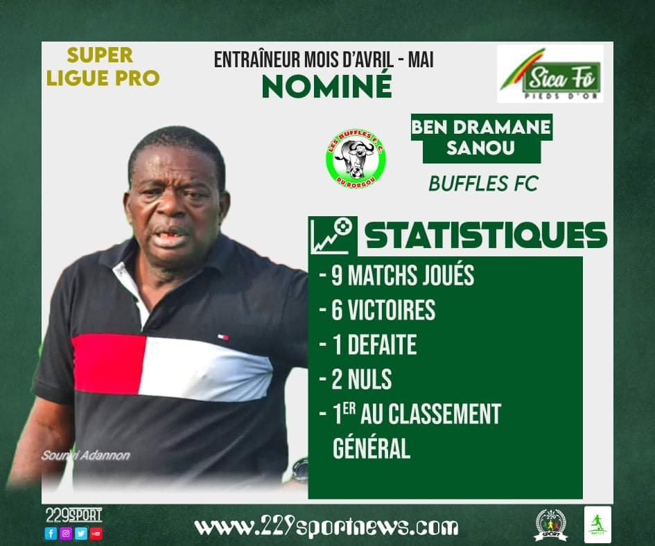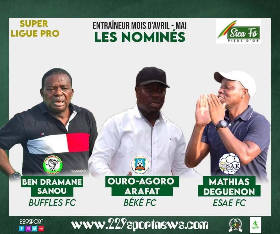 Le volet » Meilleur Entraineur » a vu Ben Dramane, Ouro Agoro Arafat et Mathias Déguénon comme nominés. En effet, sont nominés, les techniciens des trois équipes membres du podium à l’issue de la phase aller de la Super Ligue Pro. Au cours de la manche aller de la Super Ligue Pro, Ben Dramane Sa ou et les Buffles de Borgou ont fait une sans-faute à domicile et sont sacrés champion. ESAE de Mathias Déguénon est le vice-champion avec 17points et deuxième meilleure attaque avec 13 réalisations, Ouro-Agoro Arafat de son côté, a arraché une place sur le podium à l’équipe de Bembèrèkè, Béké FC, et finit meilleure attaque avec 14 réalisations.
