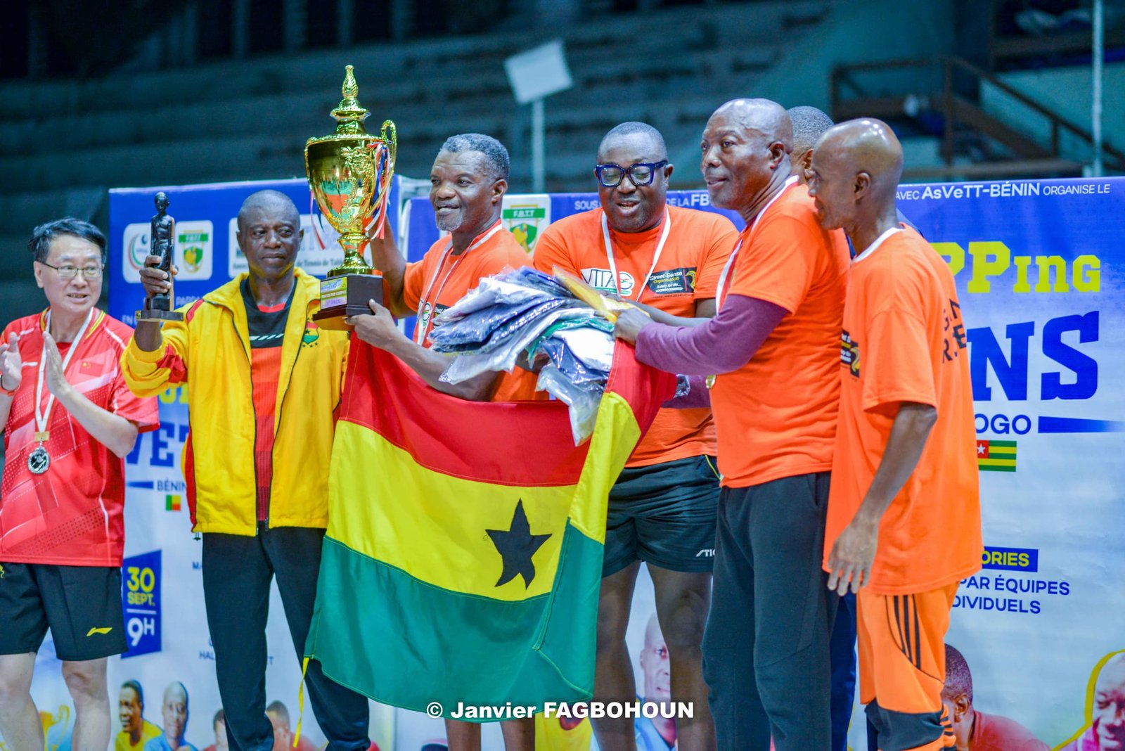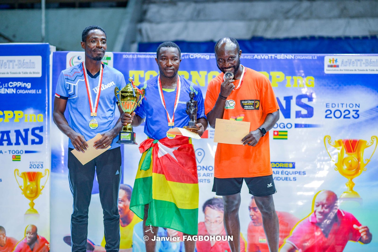 Amédé ARMAND, Vainqueur de la Catégorie 40-49 ans : « Je suis extrêmement heureux de ma victoire. L’organisation était parfaite, le niveau de jeu était élevé, tout était impeccable et répondait aux normes de l’ITTF. Depuis l’année précédente, mon objectif était de remporter le tournoi, après avoir vu les Ghanéens dominer. Je me suis dit qu’entre le Togo et le Bénin, nous devions décrocher le trophée. »