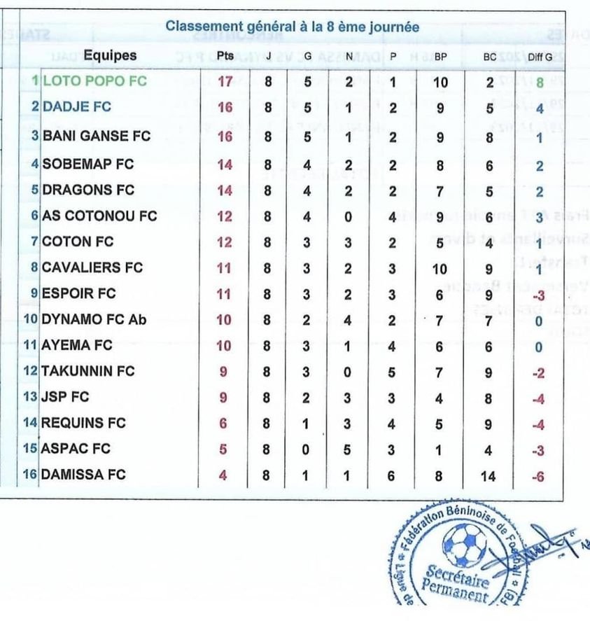 Cavaliers FC 1 – 0 Loto-Popo : Cavaliers FC a triomphé sur le score de 1 à 0 contre Loto-Popo dans une rencontre serrée. Le Leader du classement perd sa première rencontre et voit ses poursuivants se rapprocher.