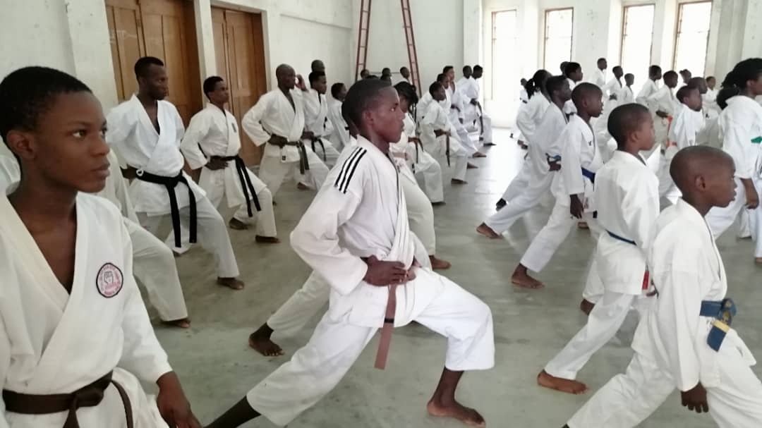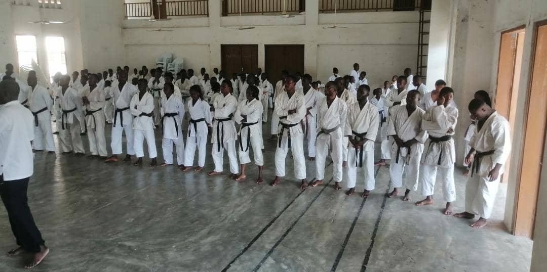 Des karatékas outillés sur les techniques de combat, Éric Gbegbo veille aux grains