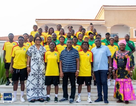 Au Togo, Mathurin de Chacus reçoit et encourage les Amazones après la victoire contre la Sierra Leone