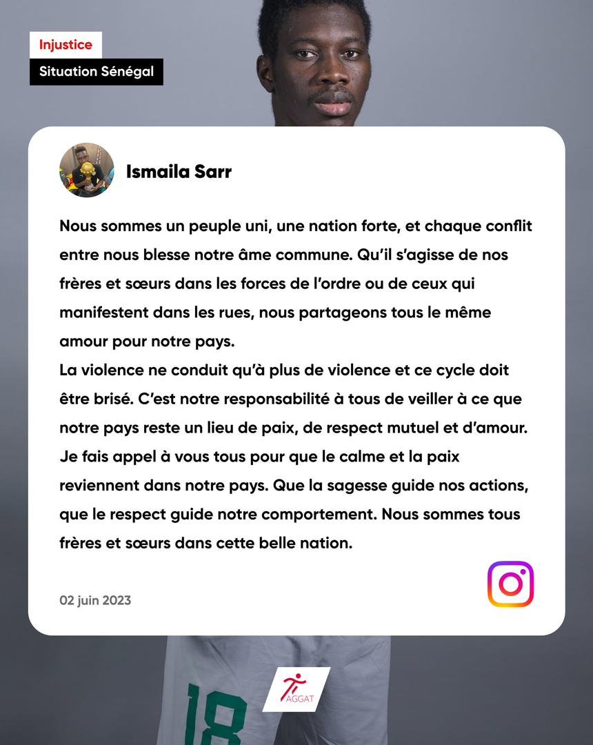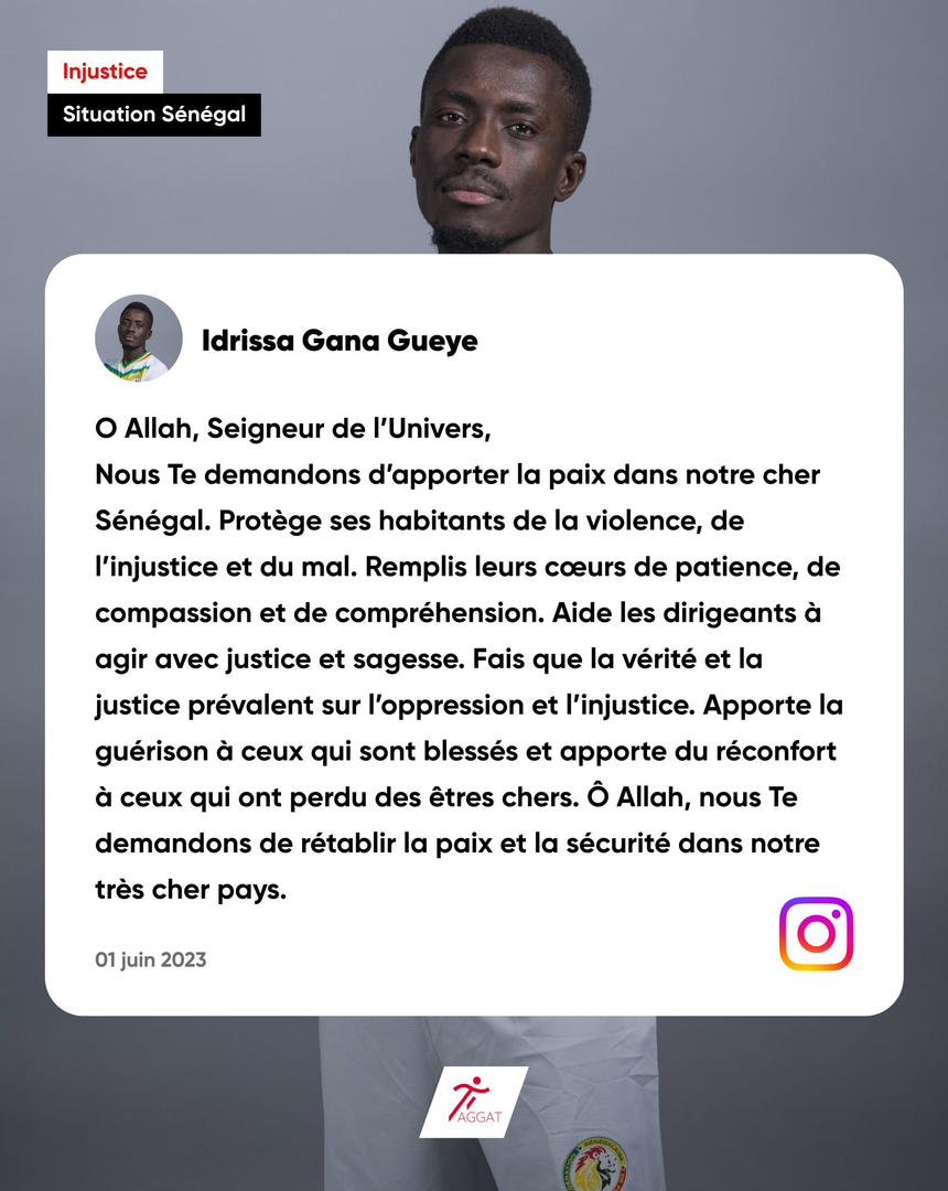 Les joueurs ont utilisé les réseaux sociaux pour partager un message de paix et d’unité, appelant à la résolution pacifique des différends. En images, la réaction de Krepin Diatta, Idrissa Gana Gueye, Sadio Mane et Ismaïla Sarr.