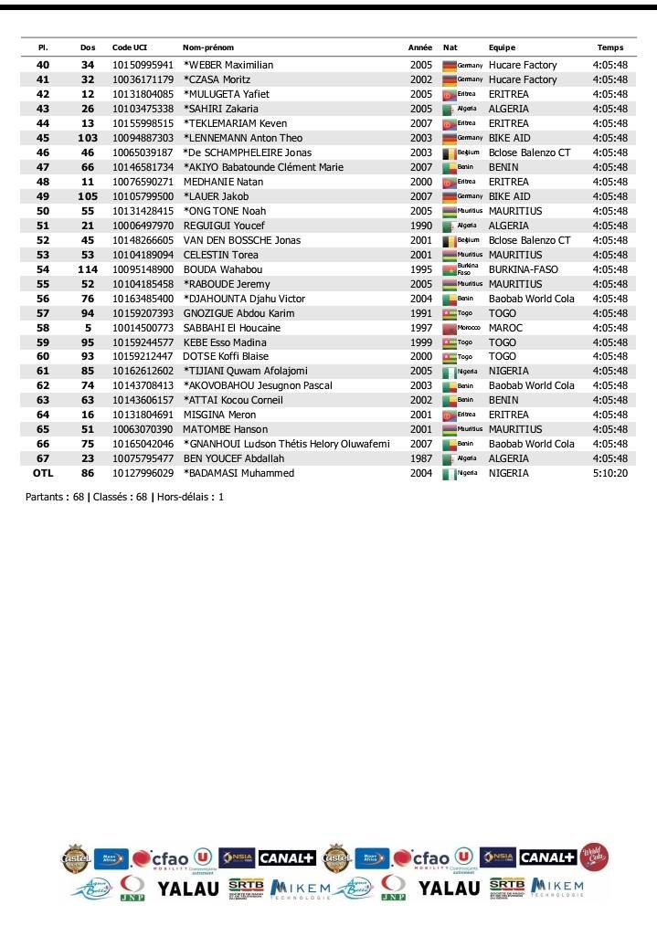 Malgré sa victoire, Assal Nadjib ne s’empare pas du classement général. Le Letton Belohvosciks Kristians, coureur de Team Bike AID, conserve le maillot jaune acquis depuis la première étape. Il abordera donc la prochaine étape avec le statut de leader, sous la pression de ses poursuivants.
