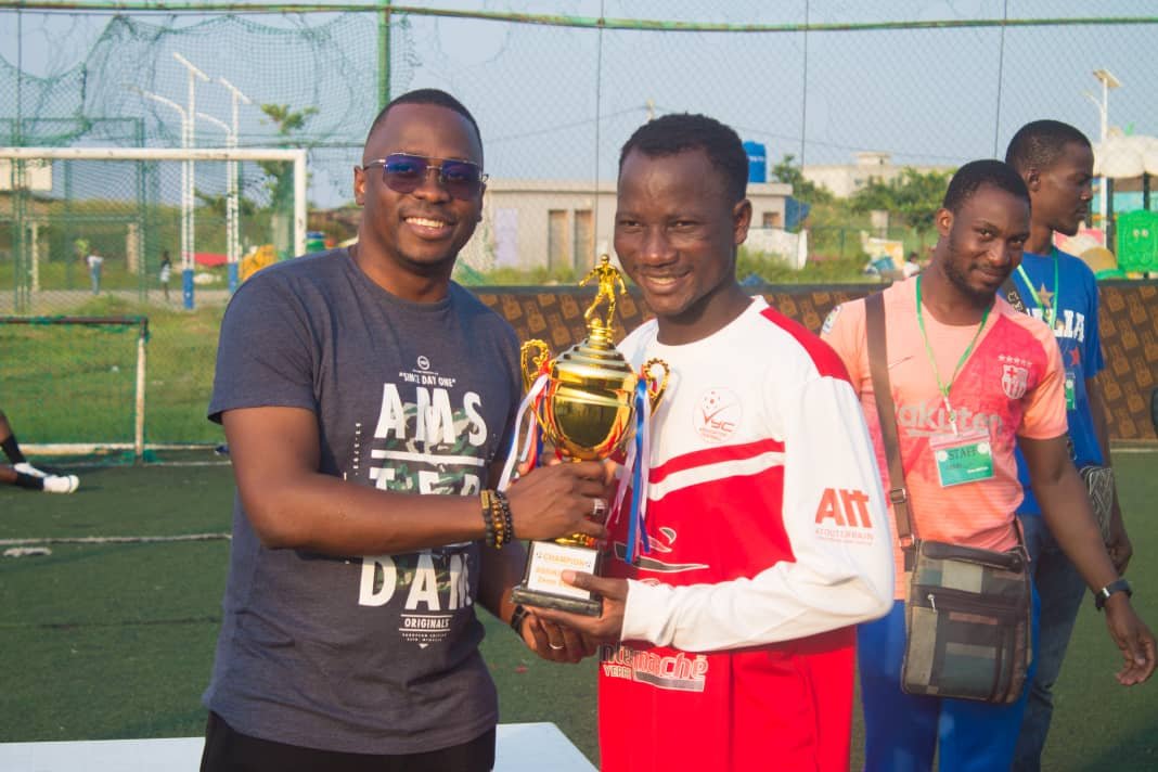 Une journée de compétition pour s’offrir un graal et un jackpot. Sur la ligne de départ, 8 équipes se sont lancées dans la course. Et, à l’arrivée, c’est Trinité FC qui s’impose. Les rouges et blancs de Trinité FC se sont défaits (3-1) de bleus de Néo Market FC. Ceci après avoir réalisé un beau parcours. 9 points sur 9 obtenus en phase de poule pour, par la suite, battre Ladji FC (3-0) en demi-finale. C’était une belle fête du cuir rond. Les meilleurs équipes ont été récompensées, le meilleur gardien (Un clean sheet et 4 buts encaissés en 5 matchs, meilleure performance) également. Trinité FC, vainqueur du tournoi est reparti avec le géant trophée en plus d’une enveloppe financière de 150. 000 FCFA. Quant à l’’équipe vice-championne, Néo Market FC, elle a aussi soulevé également un trophée et a empoché une récompense financière à hauteur de 75. 000 FCFA.