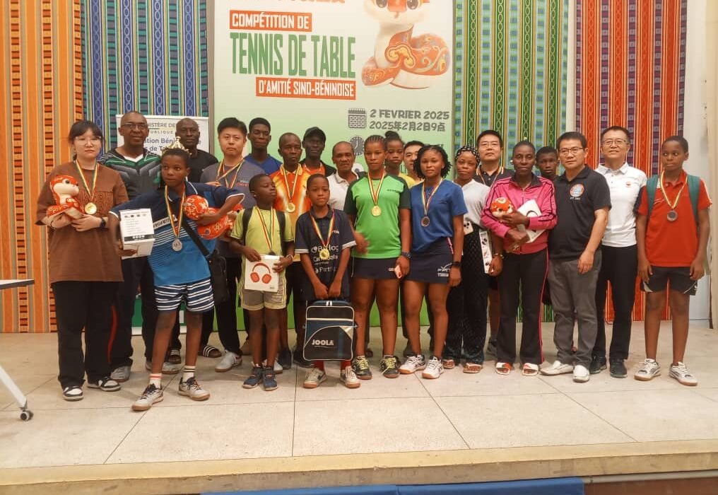 Le tournoi du Printemps chinois 2025 a connu son épilogue ce dimanche 02 février 2025 au Centre culturel chinois de Cotonou. Cet événement sportif qui marque, non seulement la célébration du Nouvel An chinois mais aussi celle de la relation sino-béninoise, a rassemblé de nombreux passionnés de tennis de table autour d’affrontements spectaculaires. Au terme de la compétition, les meilleurs pongistes ont su s’imposer et offrir un beau spectacle aux spectateurs. Point d’orgue, le match par équipe entre les membres du comité exécutif de la fédération béninoise de tennis de table et les travailleurs du centre culturel chinois. C’était l’un des temps forts du tournoi qui s’est soldée par une victoire serrée des béninois sur le score de 2-1.