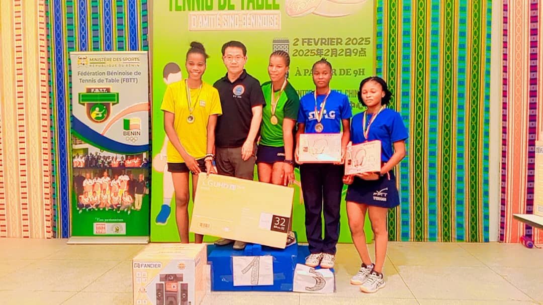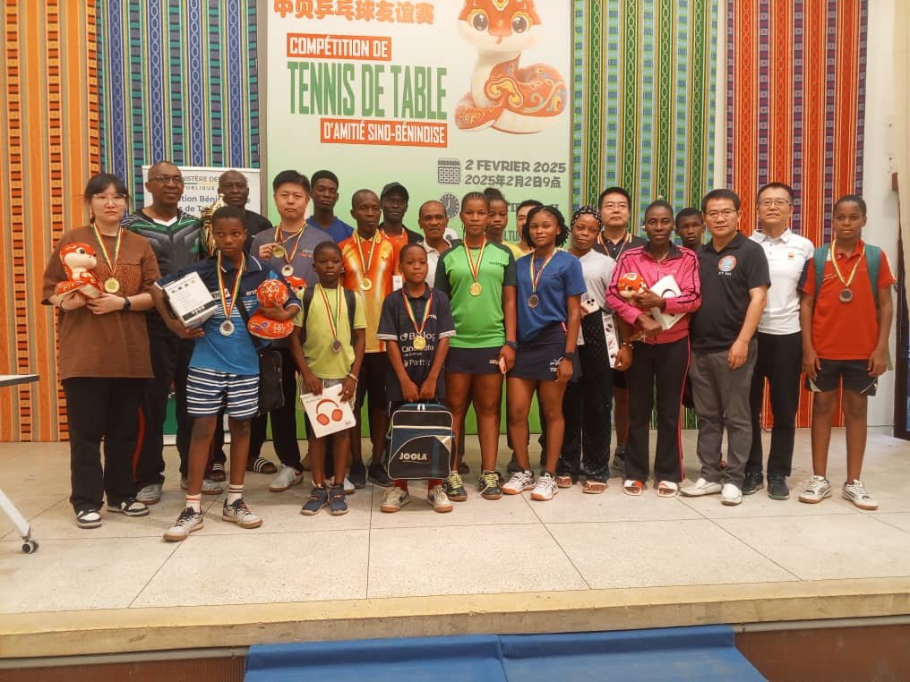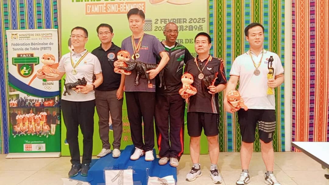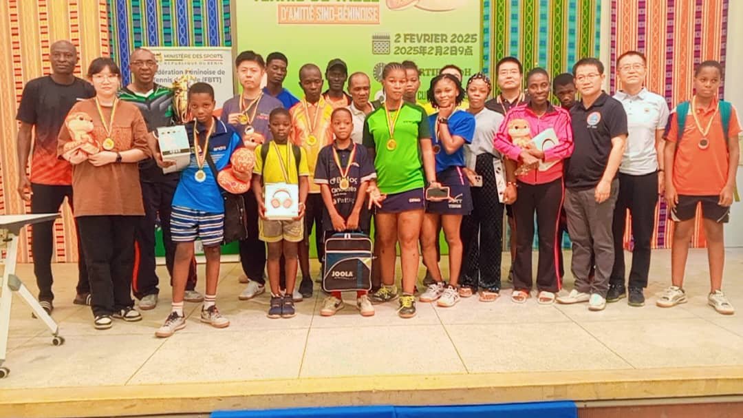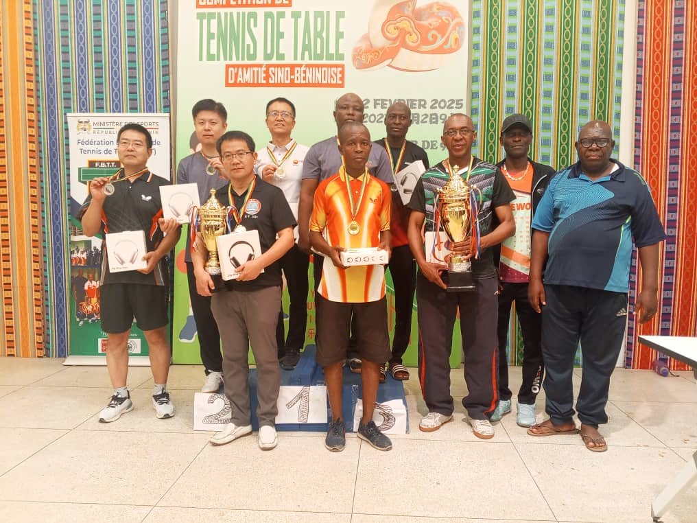 Le tournoi du Printemps chinois 2025 a connu son épilogue ce dimanche 02 février 2025 au Centre culturel chinois de Cotonou. Cet événement sportif qui marque, non seulement la célébration du Nouvel An chinois mais aussi celle de la relation sino-béninoise, a rassemblé de nombreux passionnés de tennis de table autour d’affrontements spectaculaires. Au terme de la compétition, les meilleurs pongistes ont su s’imposer et offrir un beau spectacle aux spectateurs. Point d’orgue, le match par équipe entre les membres du comité exécutif de la fédération béninoise de tennis de table et les travailleurs du centre culturel chinois. C’était l’un des temps forts du tournoi qui s’est soldée par une victoire serrée des béninois sur le score de 2-1.