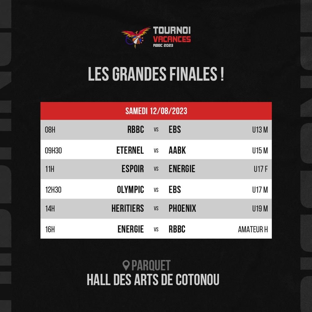 Le Tournoi Vacances RBBC 2023 a atteint son moment culminant avec l’arrivée tant attendu des grandes finales. Après des semaines de compétition acharnée, les équipes se sont battues avec détermination pour obtenir leur place dans les finales de chaque catégorie. L’excitation est à son comble alors que les meilleurs talents du tournoi se préparent à s’affronter pour décrocher la victoire ultime. Les supporters, les joueurs et les organisateurs se préparent à vivre une journée mémorable au Hall des Arts de Cotonou.