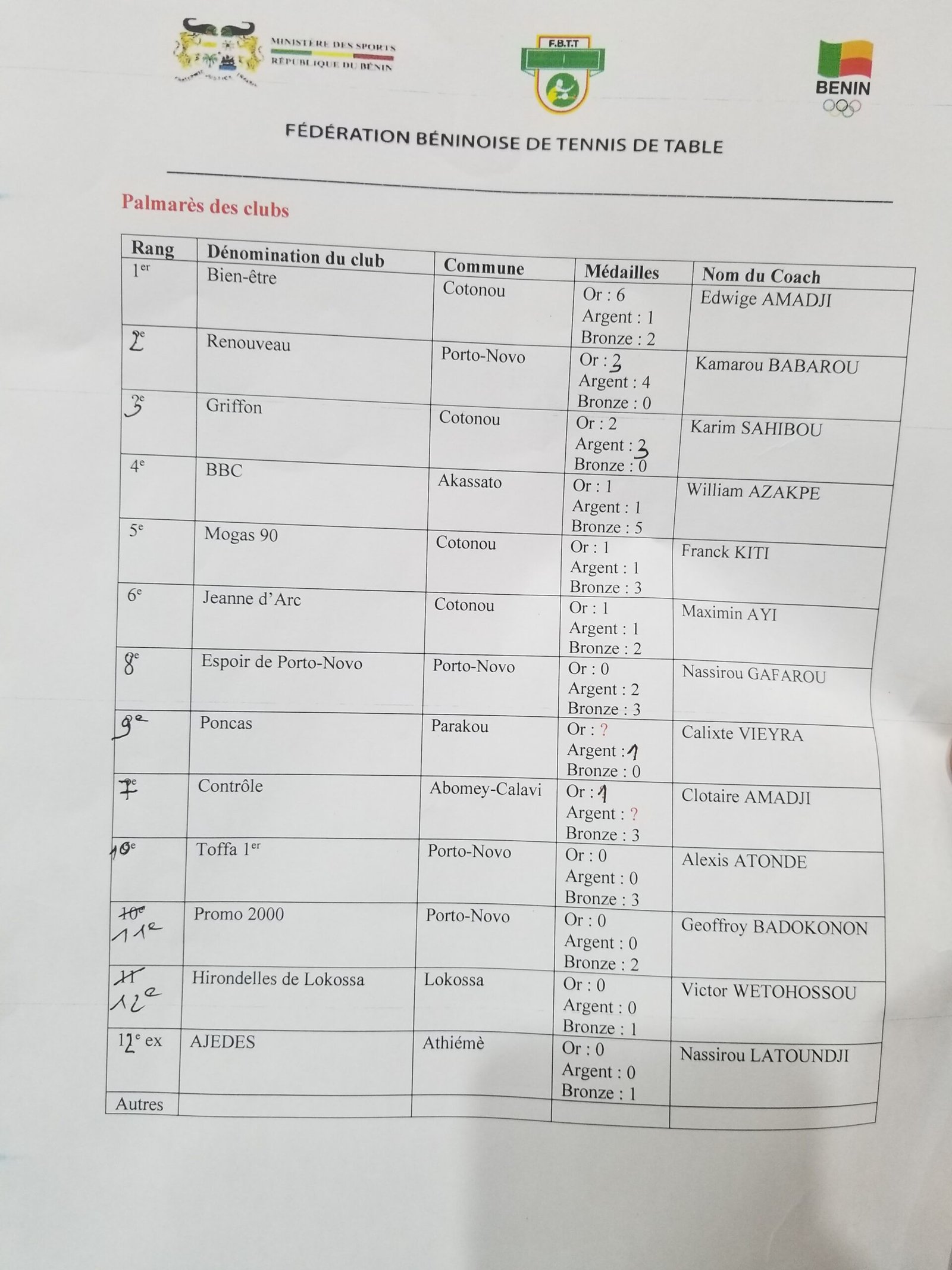 Dans une arène où la compétitivité était à son paroxysme, le club « Bien être » a brillé d’une lumière éblouissante. Dévoilant leur talent et leur maîtrise du jeu, les athlètes de ce club ont réalisé des exploits remarquables, décrochant des récompenses majeures. Cette performance remarquable témoigne de leur domination continue dans le tennis de table béninois, confirmant leur position prééminente.