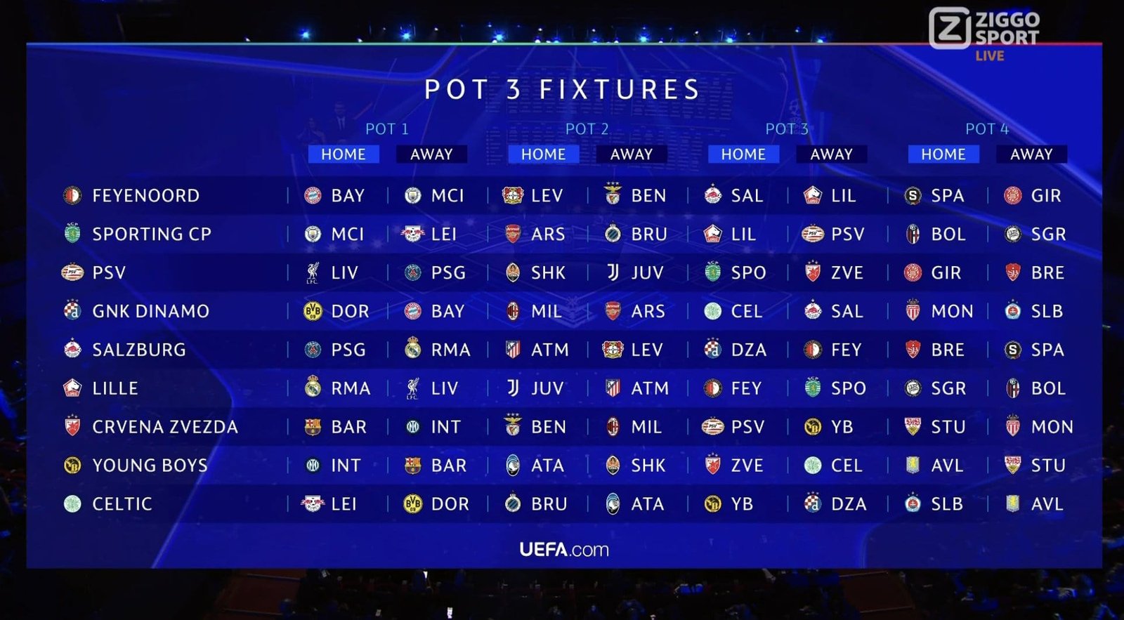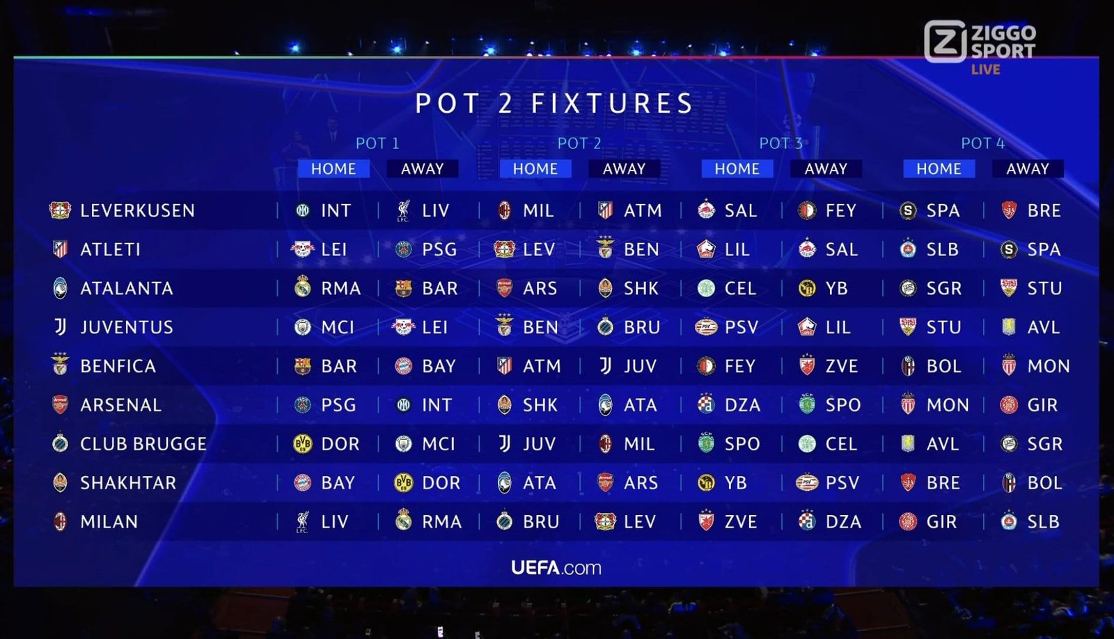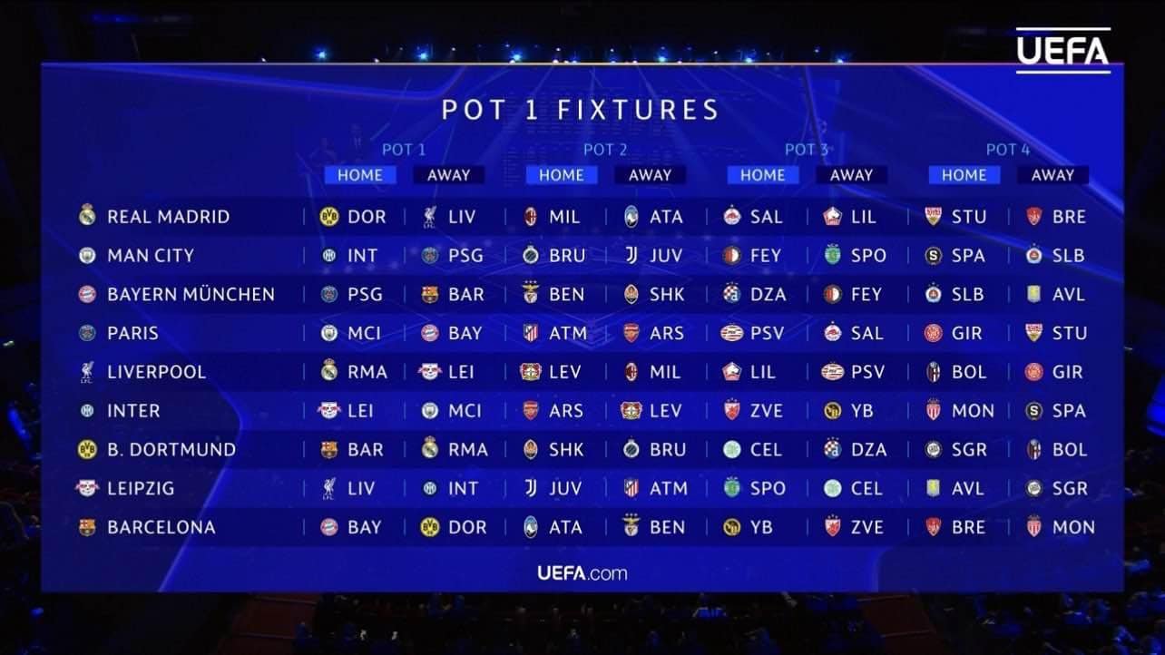 La phase de poules traditionnelle est désormais remplacée par une phase de ligue, où 36 équipes s’affronteront dans un mini-championnat. Chaque équipe jouera 8 matches lors de ce premier tour : 4 à domicile et 4 à l’extérieur, contre des adversaires différents à chaque rencontre.