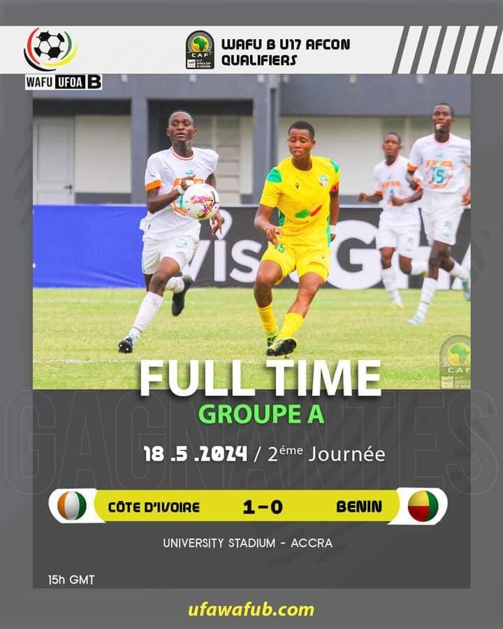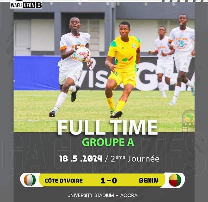 Ce samedi 18 mai 2024, le Bénin a fait son entrée dans le tournoi qualificatif de la CAN U17 2025, UFOA-B à Accra. Contre la Côte d’Ivoire qui faisait, elle, sa deuxième sortie, les béninois se sont inclinés sur la plus petite des marges.