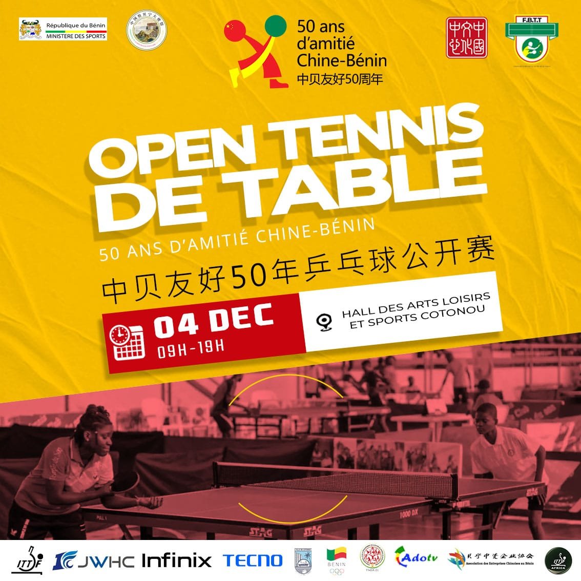 En collaboration avec la fédération béninoise de Tennis de table, le centre culturel chinois de Cotonou organise un open de tennis de table dans la cadre des 50 ans d’amitié entre la République populaire de Chine et le Bénin. La compétition aura lieu dimanche 4 décembre 2022 au hall des Arts à Cotonou. A travers cet événement, les organisateurs visent célébrer la belle amitié entre les deux nations sœurs. Pour l’occasion, près de 150 athlètes hommes et dames sont attendus pour raviver le challenge. Ceux-ci vont compétiter dans les catégories Séniors Hommes et Dames, U21 Garçons, U13 Filles et garçons, Vétérans : 40 a 49 ans, et Vétérans : 50 ans et plus.